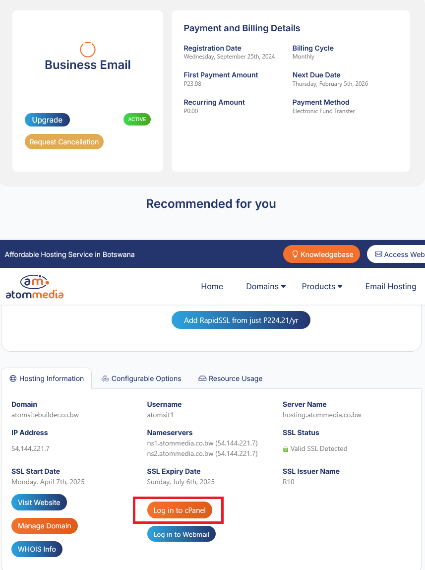 Step 1: Enter your Email Address and Password to login, use this link https://shop.atommedia.co.bw/index.php?rp=/login